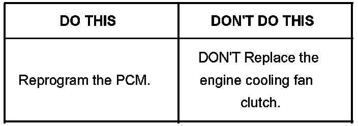 ^ Use a Tech 2(R) to command the cooling fan off. If the ticking noise goes away, the pulsing of the cooling fan clutch is the source of the noise.