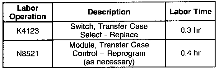 11. For 2002 vehicles produced prior to January 2002, verify that the vehicle contains the latest calibration for the automatic transfer case control module. The calibrations were available from Techline starting January 2002, on the TIS 2000 version TIS 01/2002 data update or later. Reprogram the automatic transfer case control module if necessary.