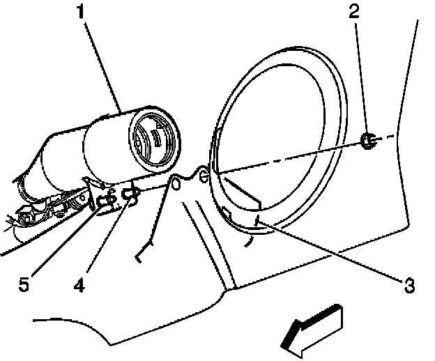 3. Remove the fuel fill pipe bracket nut (2).
