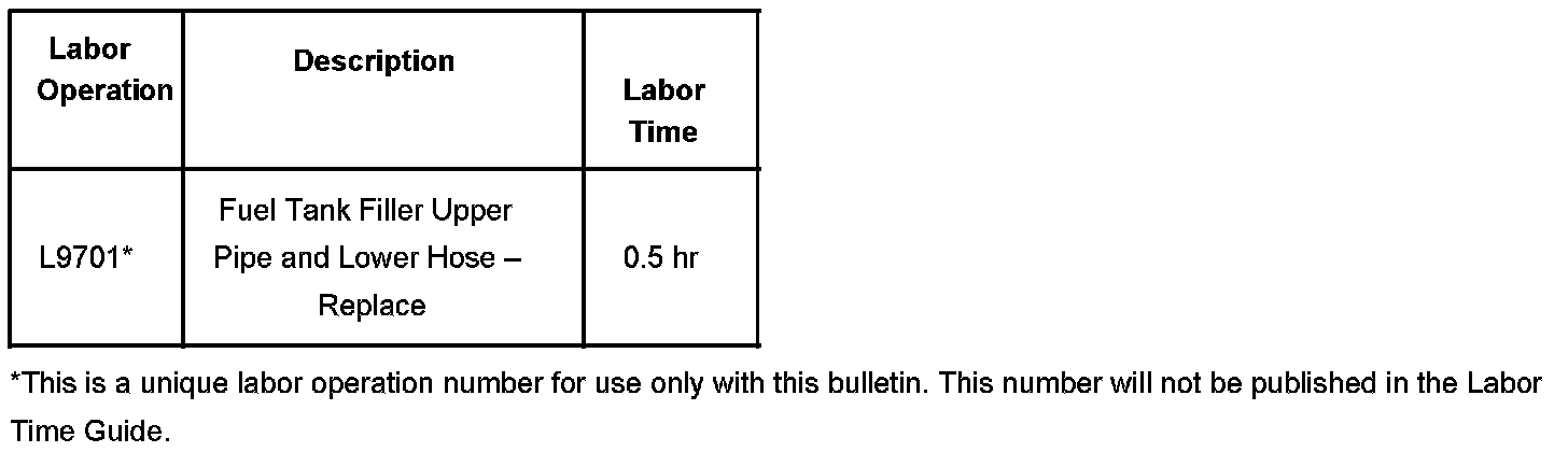 Replace the fuel tank filler upper pipe assembly with P/N 88983256 or P/N 15131043, and lower hose assembly with P/N 15131046. The new upper pipe has been redesigned to provide smoother flow conditions within the section and the lower hose has been redesigned to include a checking feature. Use the procedure listed below.