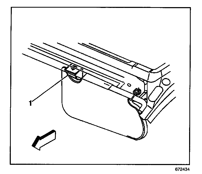 11. Remove the inboard retainer (1) from the headliner.