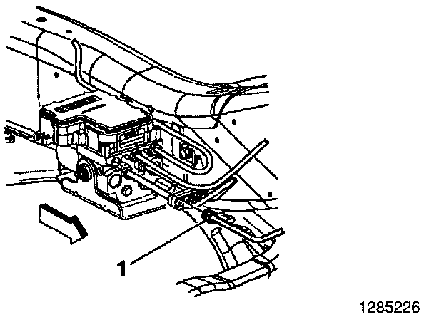 ^ If the tooling mark IS present (1), then the brake pipe does NOT need to be replaced. Lower the vehicle and install the GM Recall Identification Label.