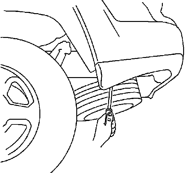 2. If necessary, remove any dirt or road debris from the underside of the left rear corner of the vehicle as shown above.