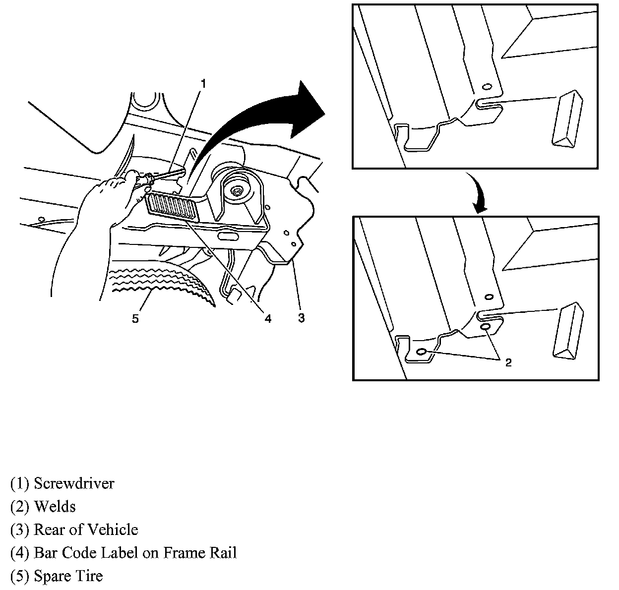 ^ If the welds are present, no further action is required. Install the GM Recall Identification Label and return the vehicle to the customer.