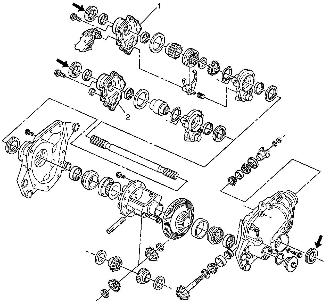 1. In the illustration shown number 1 is Chevrolet and GMC and number 2 is an Oldsmobile. The affected seals are indicated by the arrows.