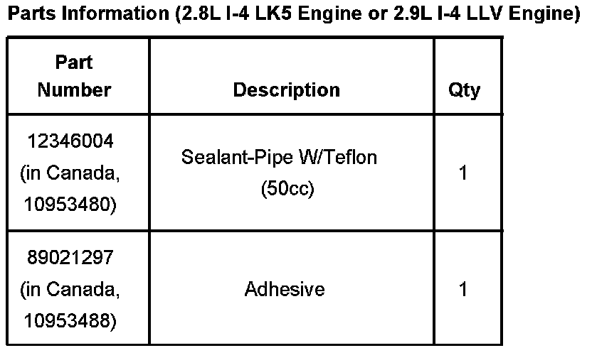 Parts Information (2.8L I-4 LK5 Engine or 2.9L I-4 LLV Engine)