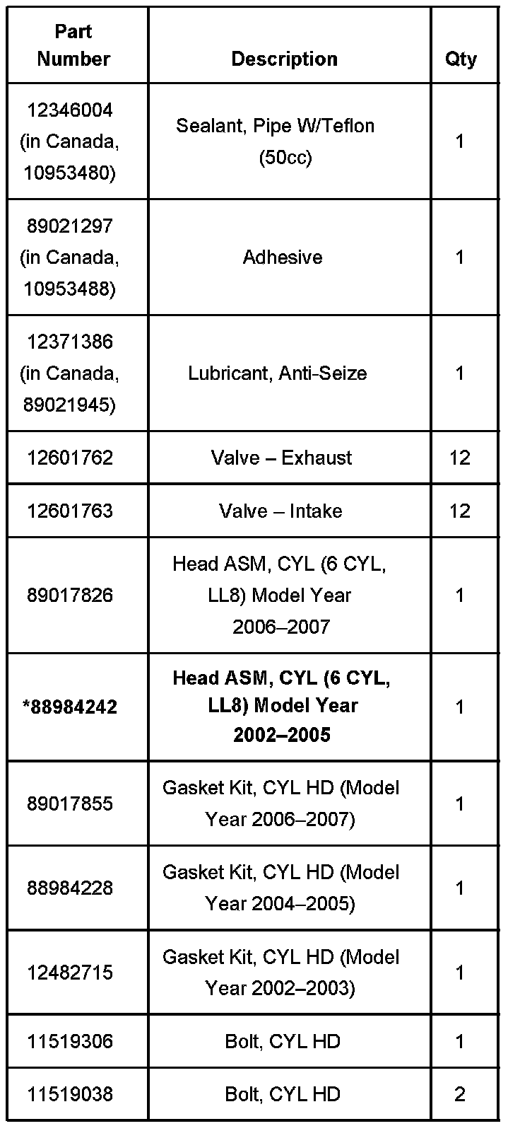 The Part Information shown unless stated is for the 2006-2007 4.2L LL8 engines only. The 2006 and newer cylinder head and related components will not work on 2002-2005 engines. All replacement cylinder heads have been up-graded with the new materials.