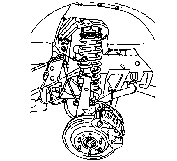 14. Using mechanics wire or hook, support the front shock module/steering knuckle to the frame.