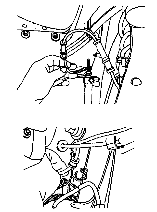 14. Install the front wheel speed sensor wiring harness in the retainers.