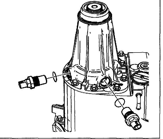11. Remove both vehicle speed sensors (VSS) and 0-ring seals from the rear extension.