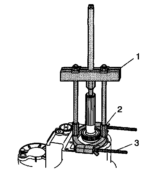 26. Using the J 44707 (1), the J 44759 (2), and the J 96513 (3), remove the speed sensor reluctor wheel from the rear output shaft.