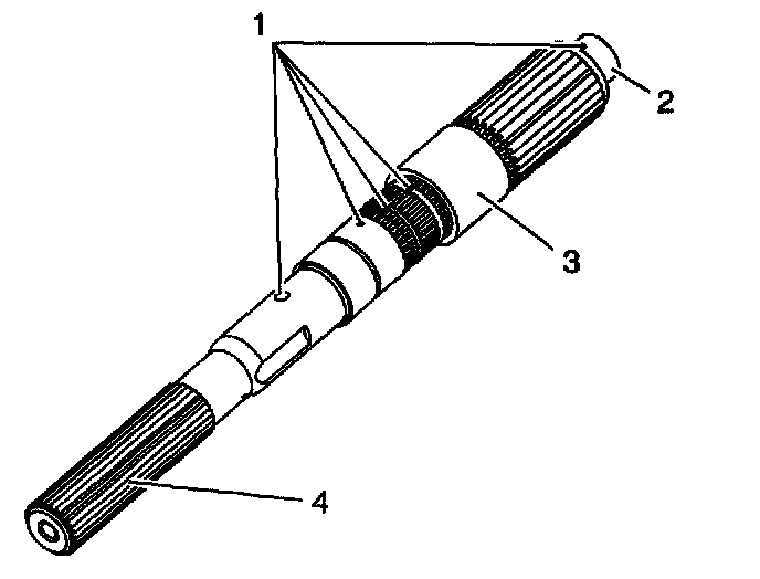 4. Inspect the rear output shaft splines (4) for damage or excessive wear. Witness marks at the location of the gears is normal.