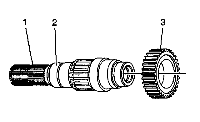 5. Inspect the front output shaft splines (1) for damage.