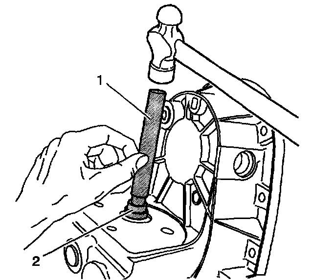 3. Using the J 8092 (1) and the J 45239 (2), install the control actuator lever shaft bearing until it bottoms in the bore. The seal side of the bearing faces the encoder motor.