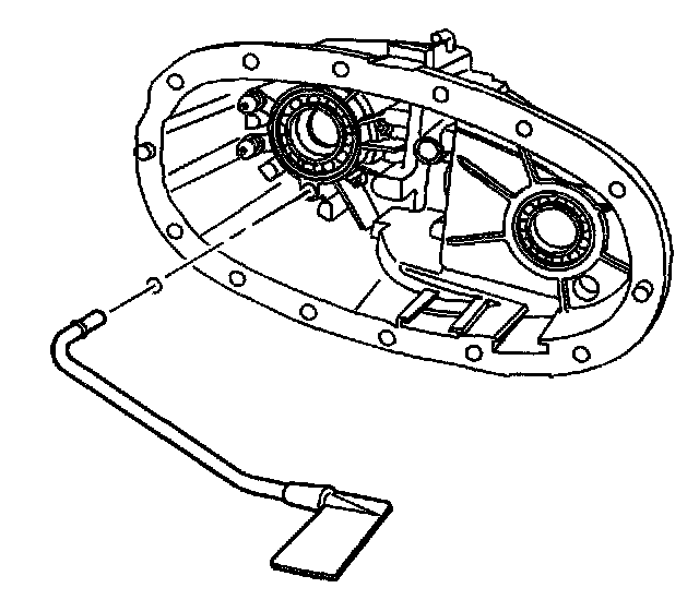 9. Install the oil pump suction pipe assembly in the rear case half. Ensure the oil pump suction pipe is fully seated.