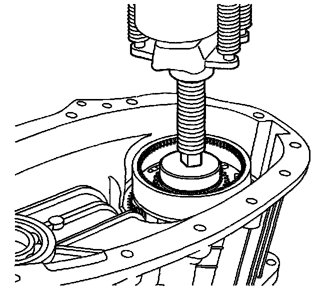1. Using a suitable bearing installer, install the rear output shaft bearing. Ensure the bearing installer is used against the outer race of the bearing.