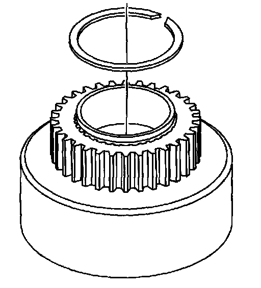 37. Install a new clutch hub retaining ring on to the rear output shaft.