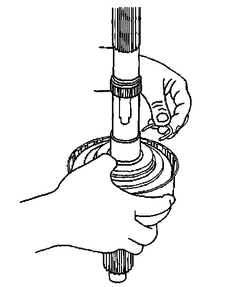 28. Install a new retaining ring for the clutch housing on the rear output shaft. Ensure the retaining ring is properly installed in the groove.