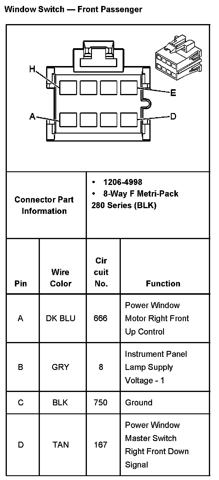 Window Switch - Front Passenger Part 1:
