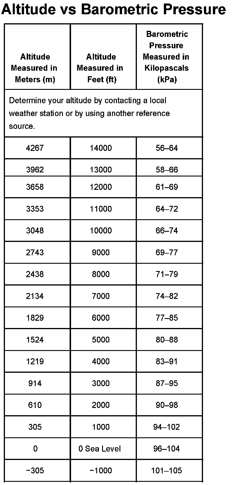 Altitude Vs Barometric Pressure: