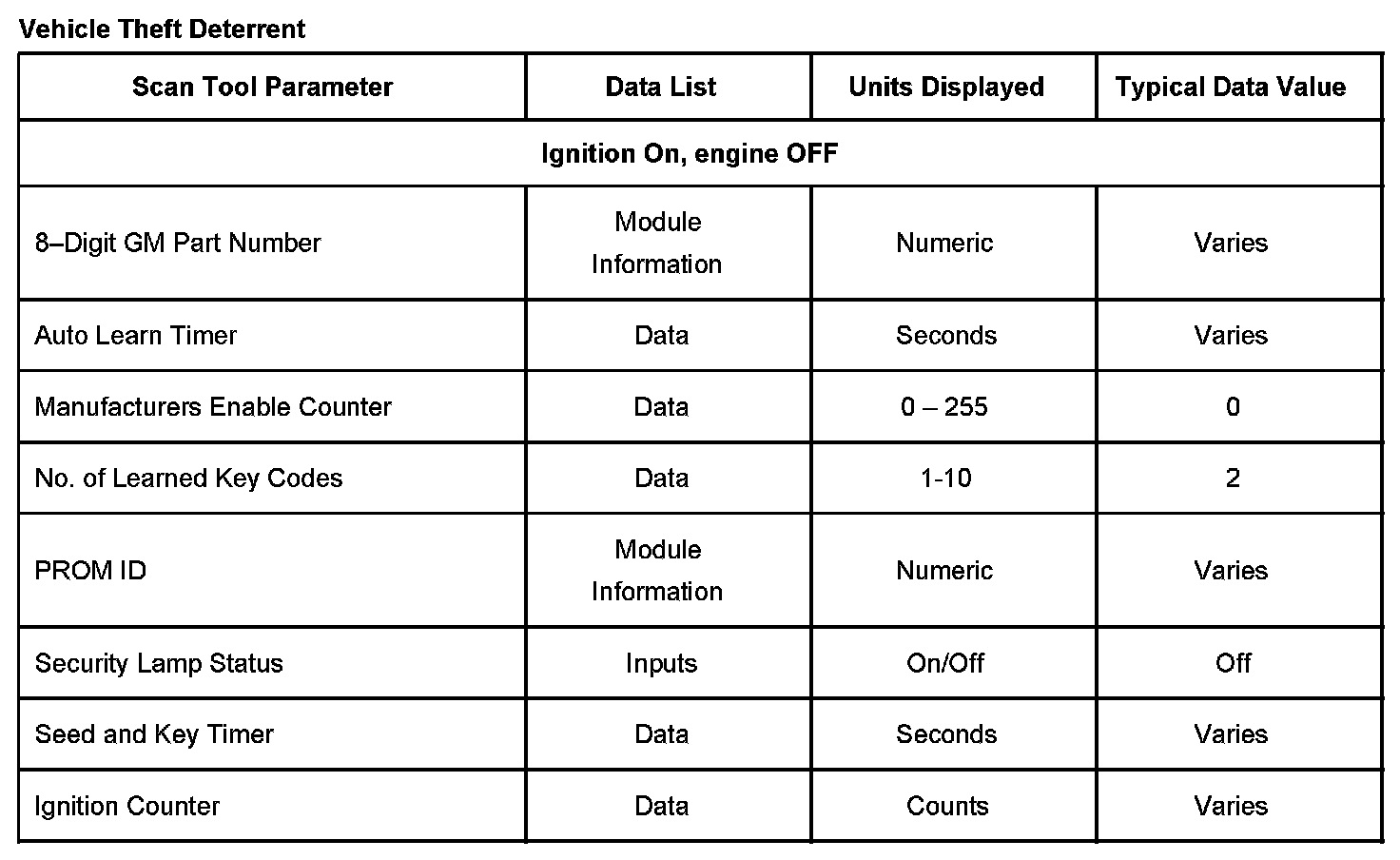 Scan Tool Data List - Antitheft System