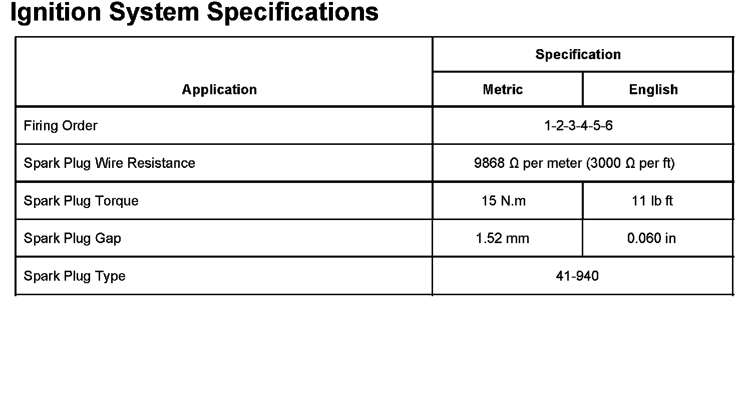 Ignition System Specifications: