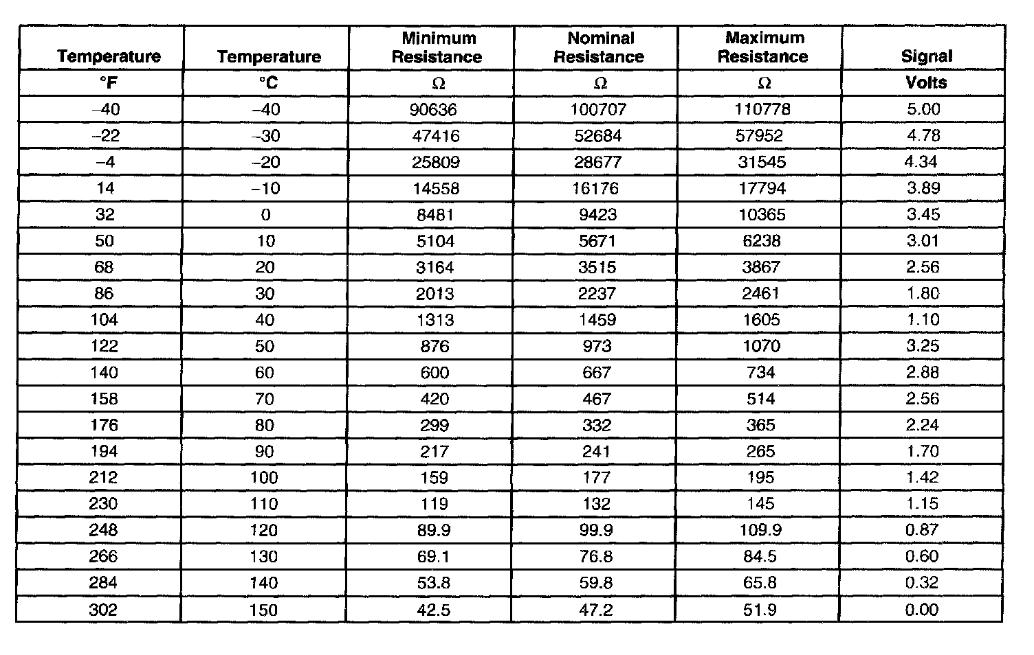 Transmission Fluid Temperature (TFT) Sensor Specifications: