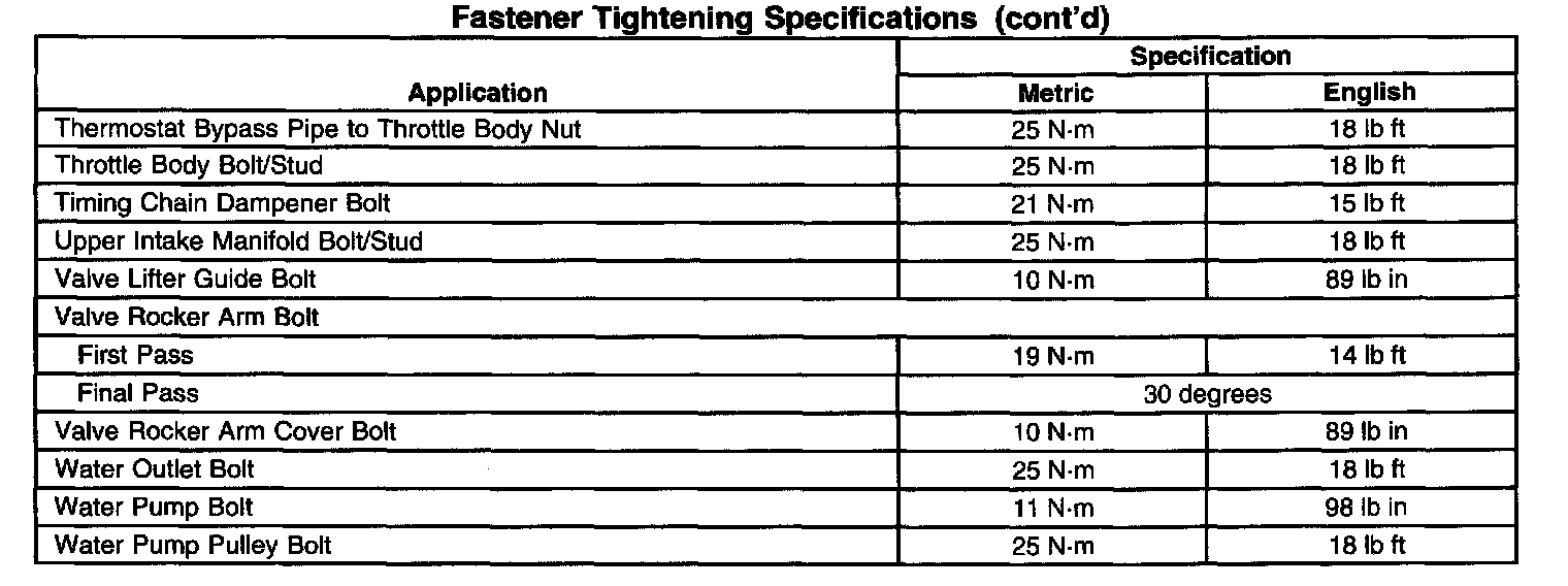 Fastener Tightening Specifications