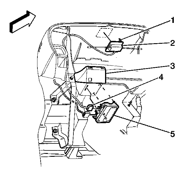 4. Remove the remote keyless entry antenna (1) from the carrier.