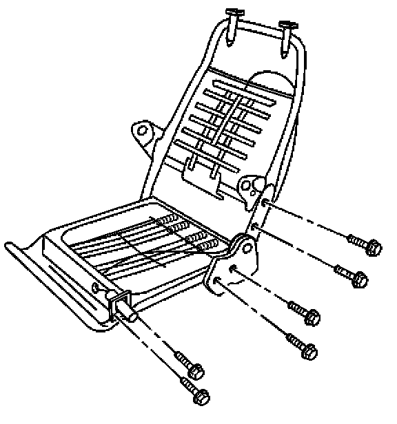 2. Install the bolts that retain the seat back hinges to the seat back frame and to the seat cushion frame.
