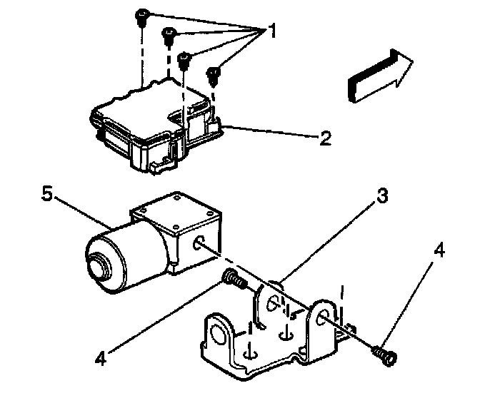 7. Remove the 4 T-25 Torso bolts (1) from the EBCM (2).