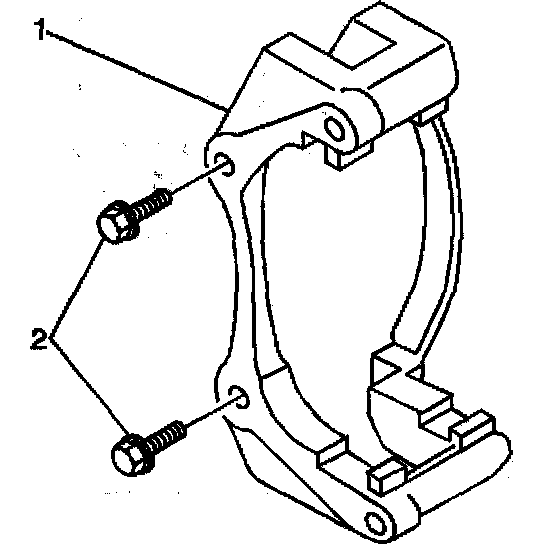 4. Remove the brake caliper bracket mounting bolts (2).