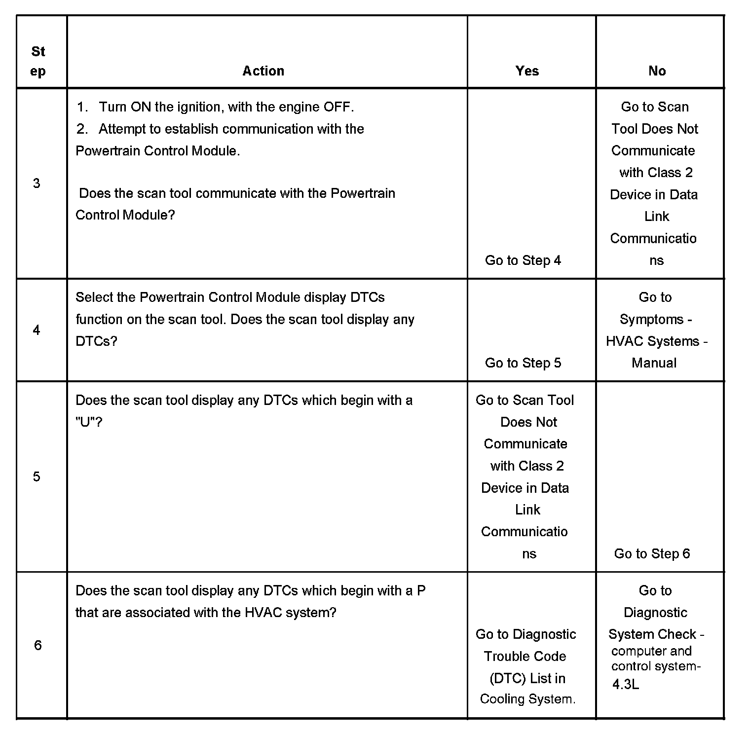 3. Lack of communication may be due to a partial malfunction of the class 2 serial data circuit or due to a total malfunction of the class 2 serial data circuit.The specified procedure will determine the particular condition.