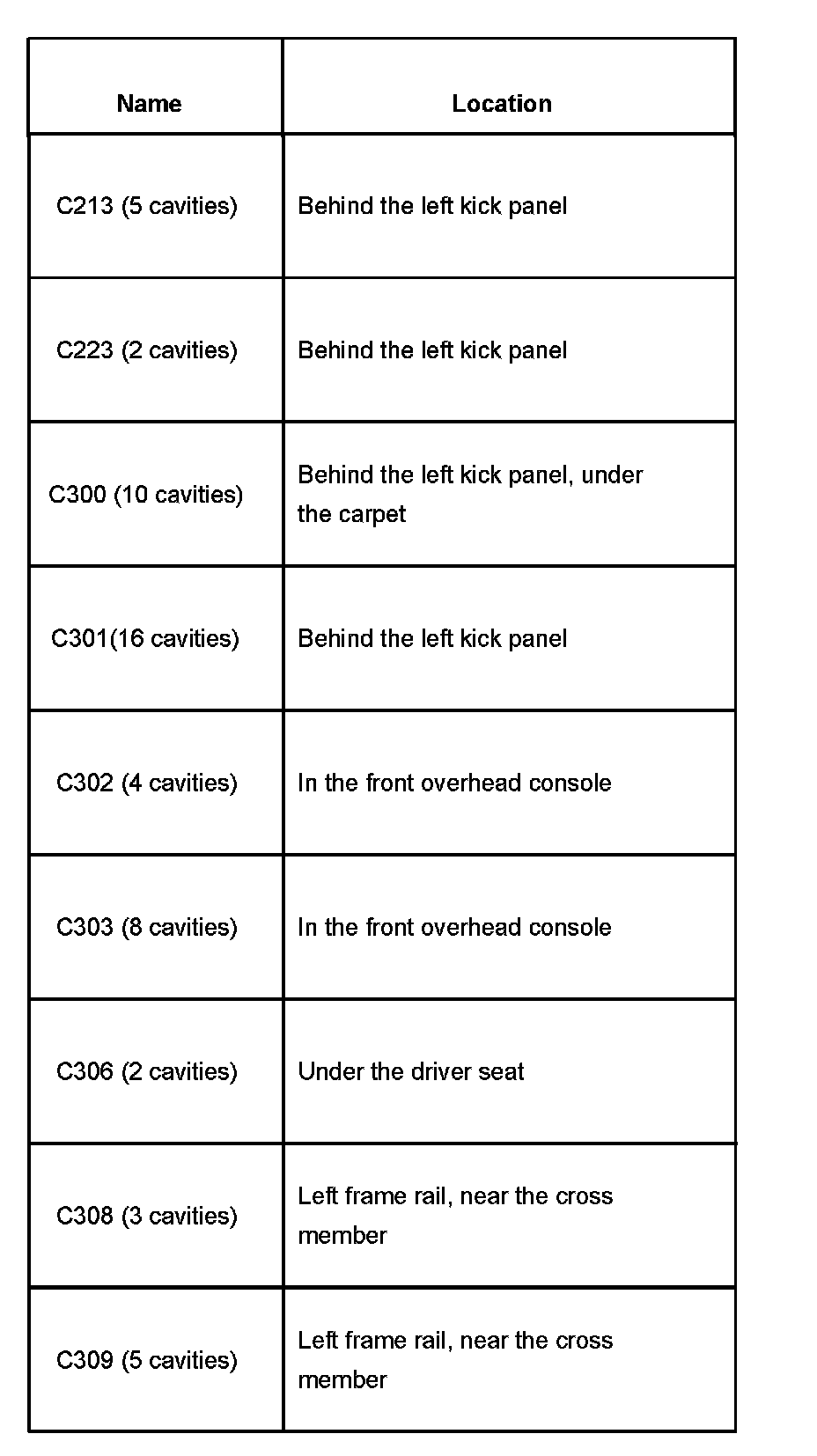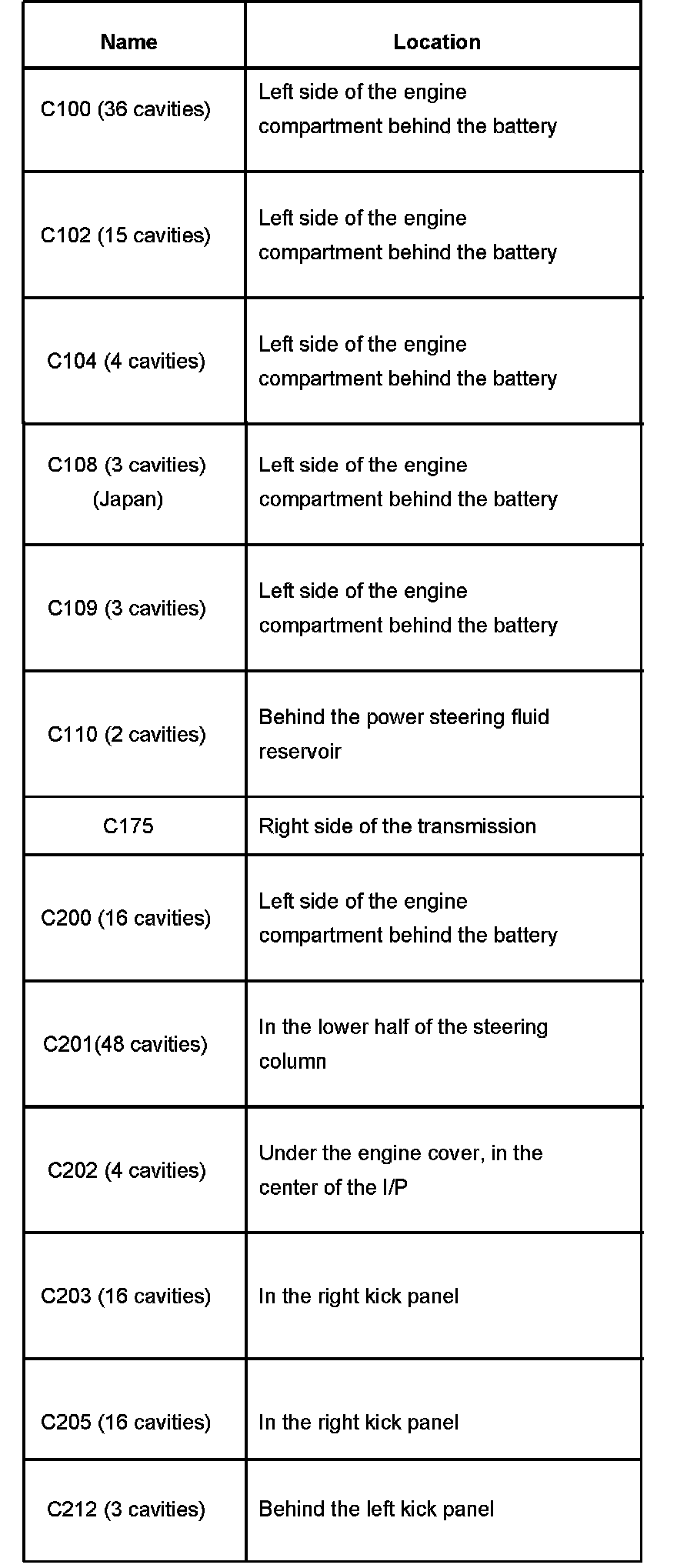 Connector Locations