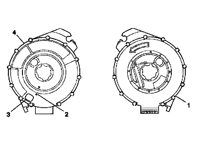 3. If the front (4) of the inflatable restraint steering wheel module coil has a centering window (3) and no spring service lock on the back side (1), perform the following steps: