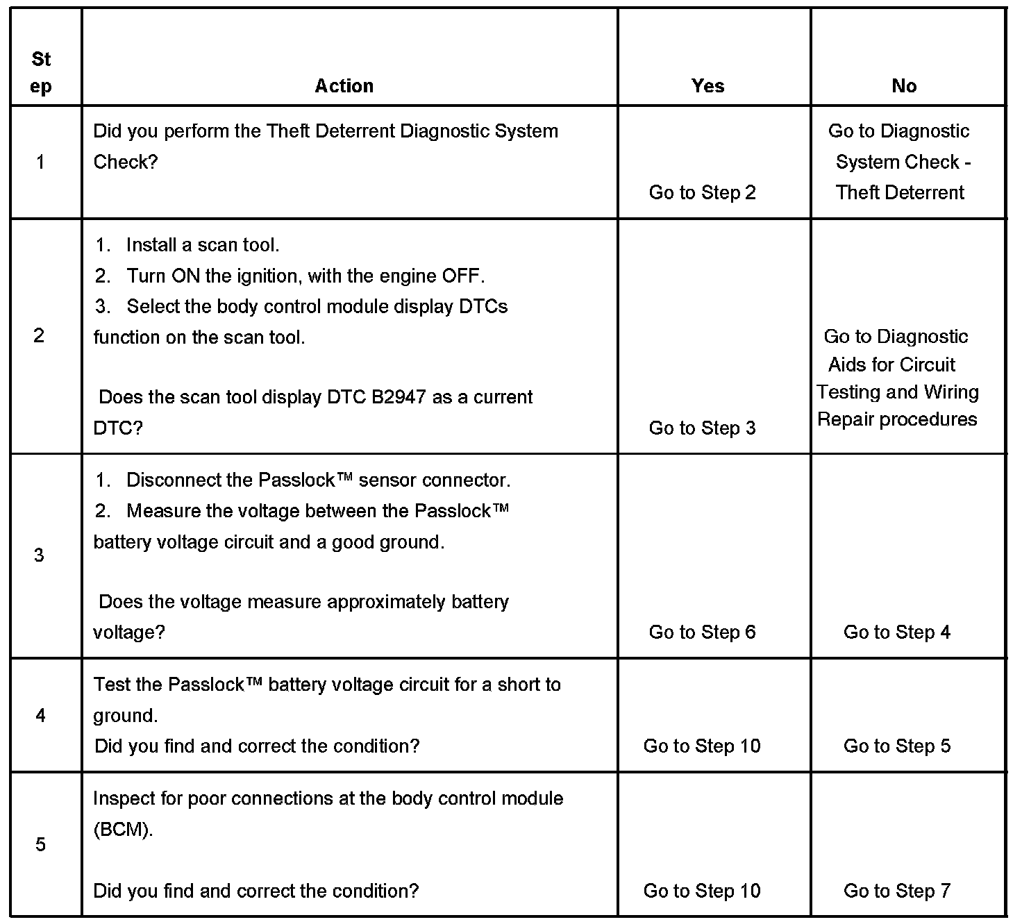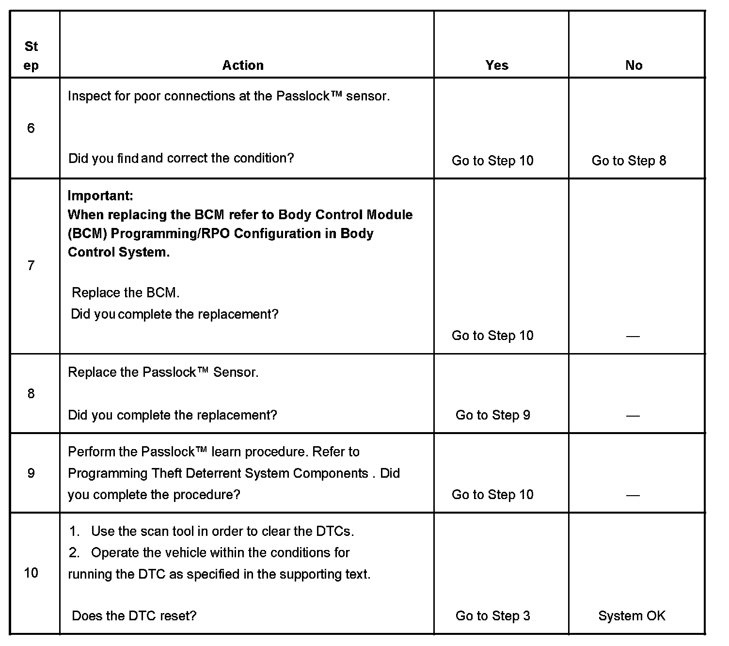 - When a short to ground is no longer present on the Passlock sensor power circuit, the ignition switch must be cycled from OFF to ON before this DTC can change from a current DTC to a history DTC.