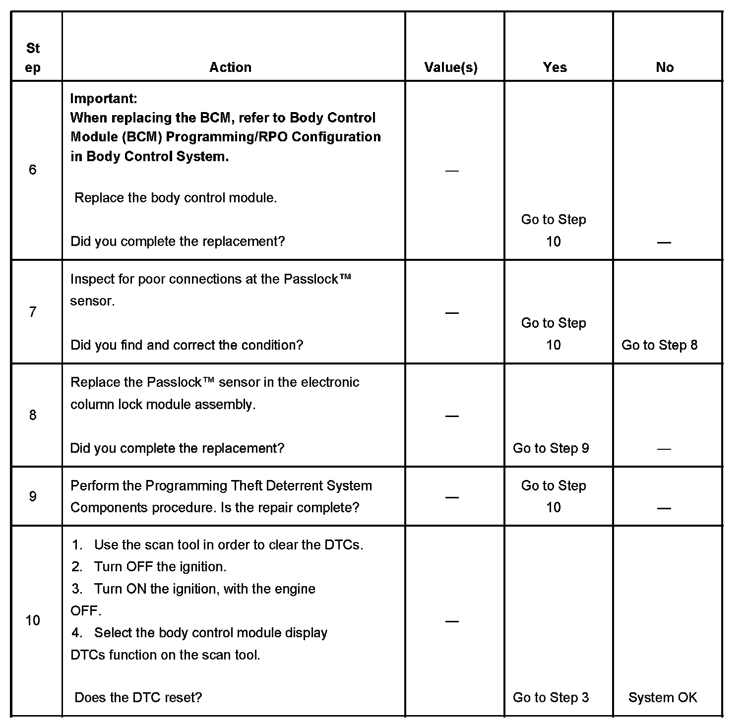 - Inspect the Passlock sensor harness for an intermittent or a short to ground.