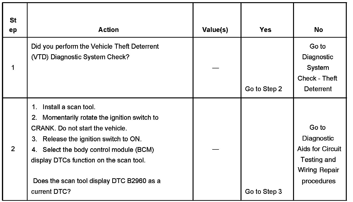 The number below refers to the step number on the diagnostic table.