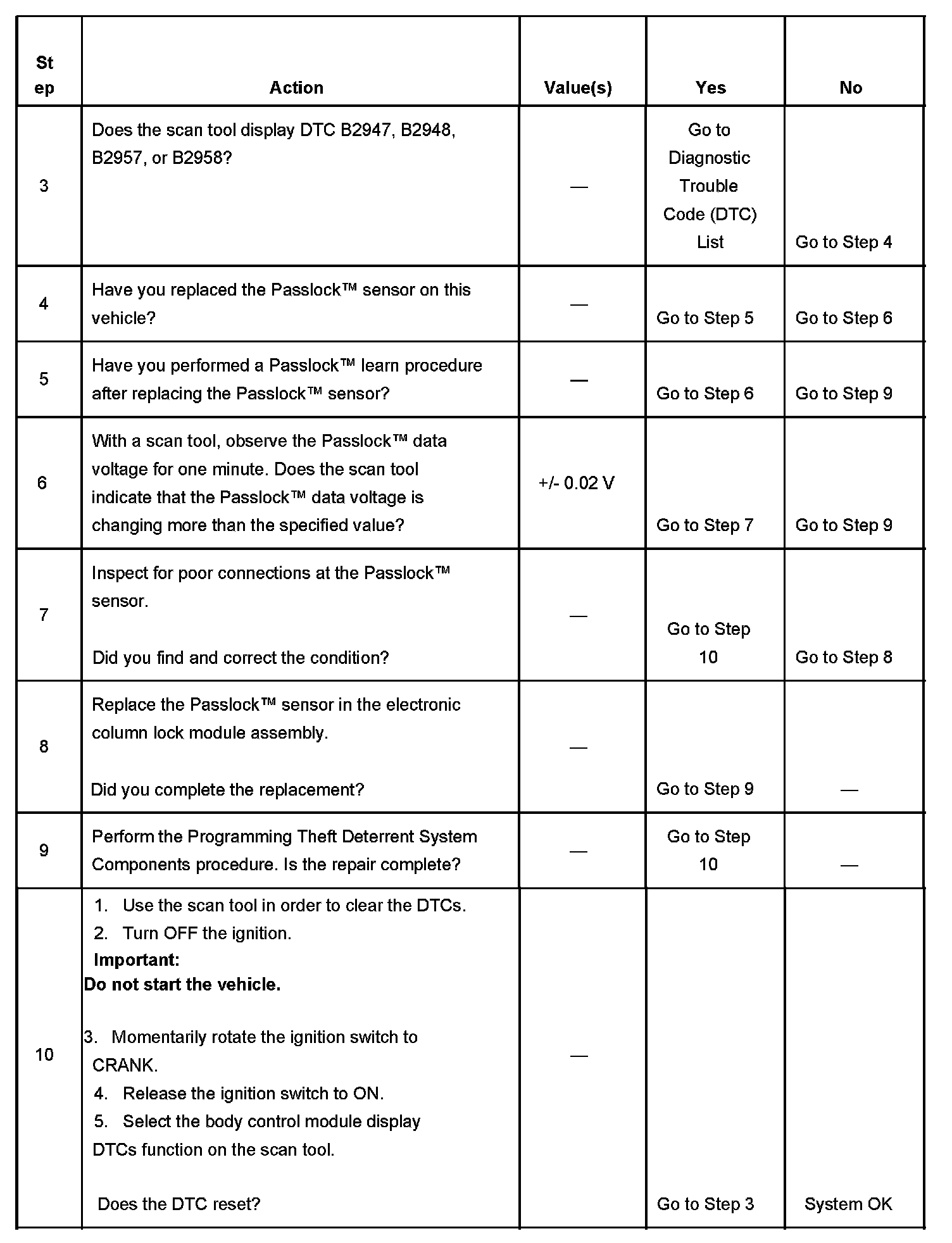 - Use a scan tool in order to inspect the Passlock data voltage and the Passlock code.