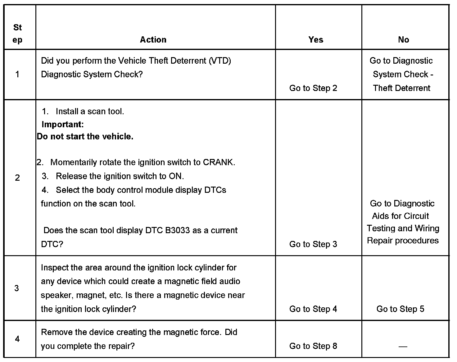 3. Tests for a magnetic field near the ignition lock cylinder.