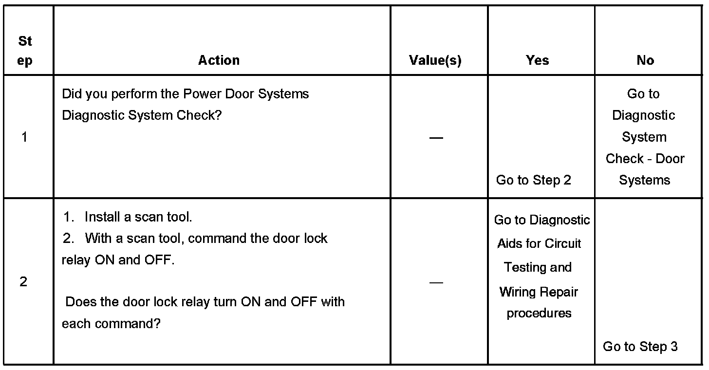 2. Listen for an audible click when the door lock relay operates. Command both the ON and OFF states. Repeat the commands as necessary.