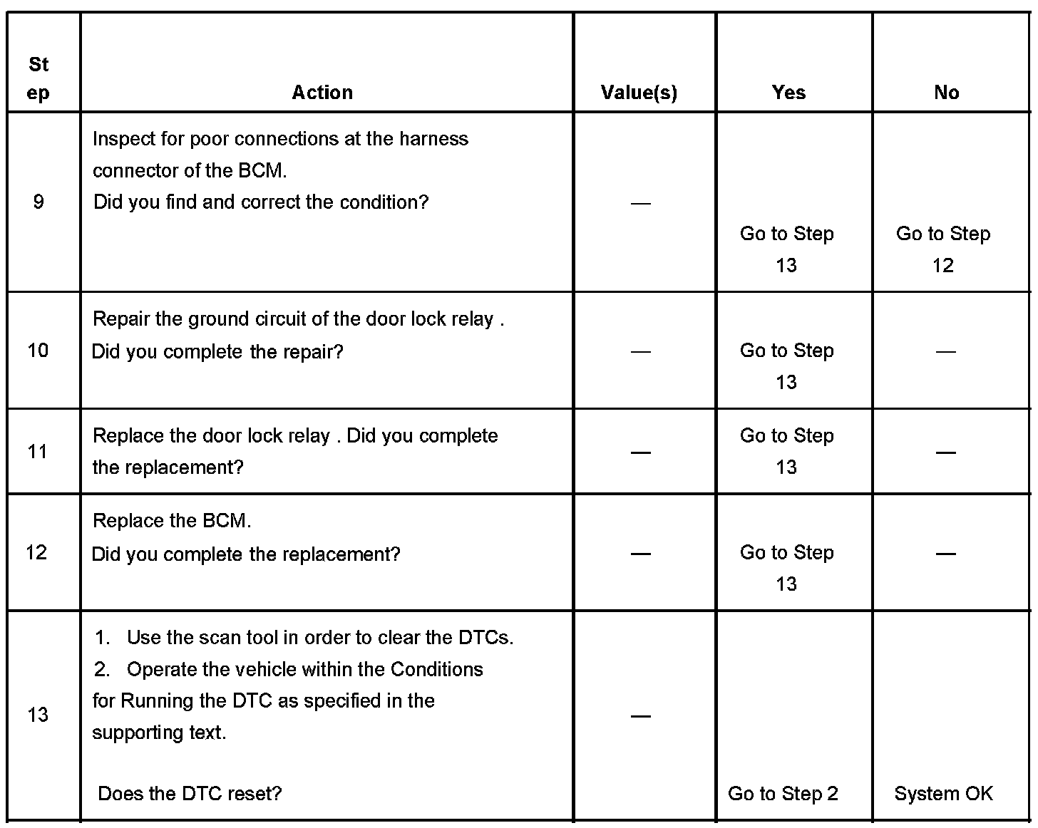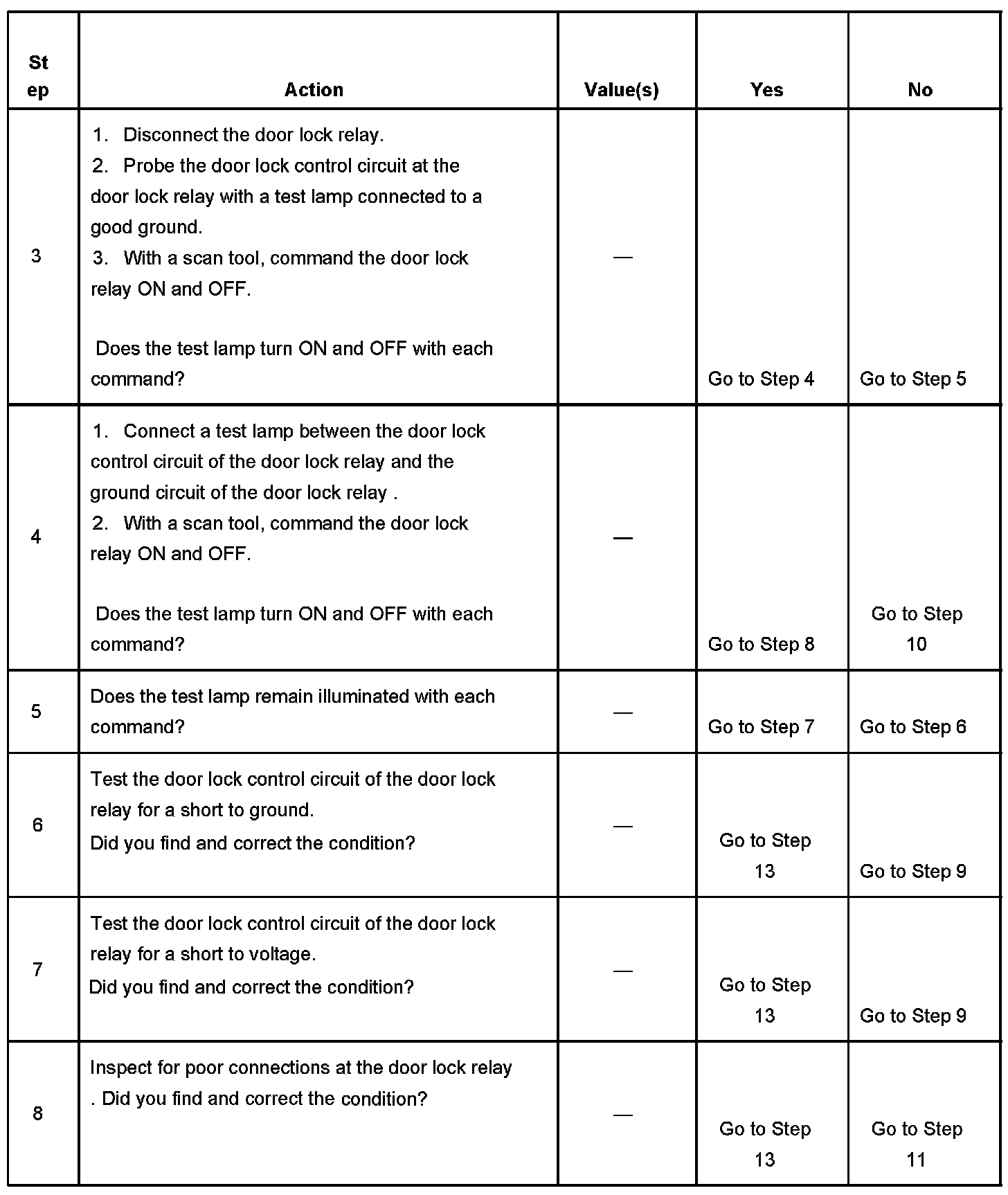 4. Tests for an open in the ground circuit to the door lock relay.