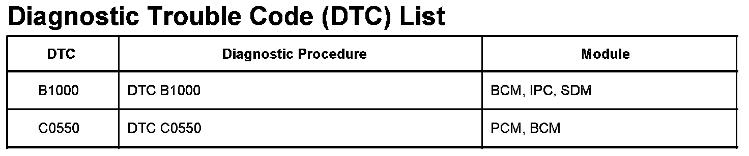 DTCs B1000 - C0550:
