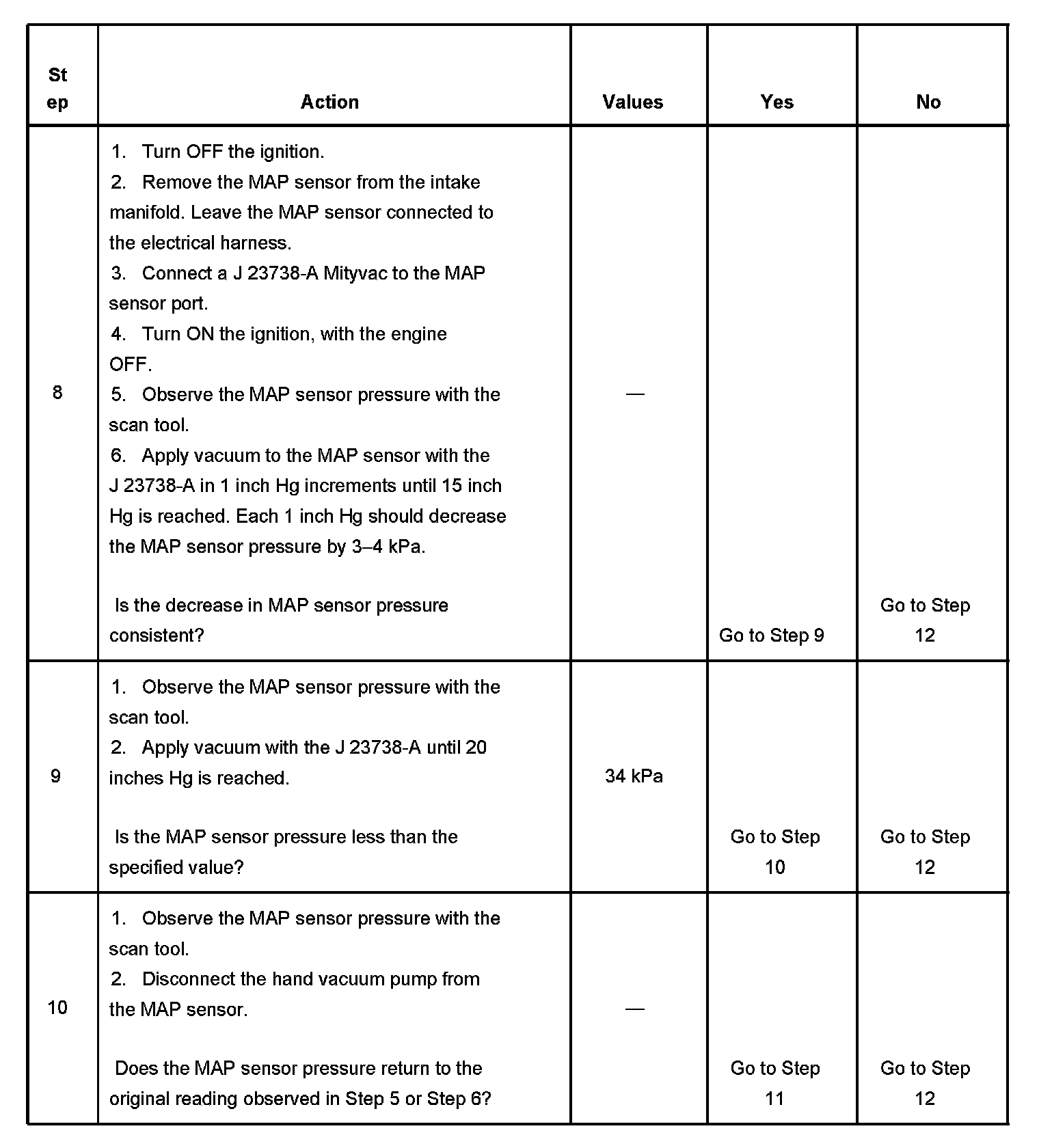 9. This step tests for a proper MAP sensor pressure with an applied vacuum.