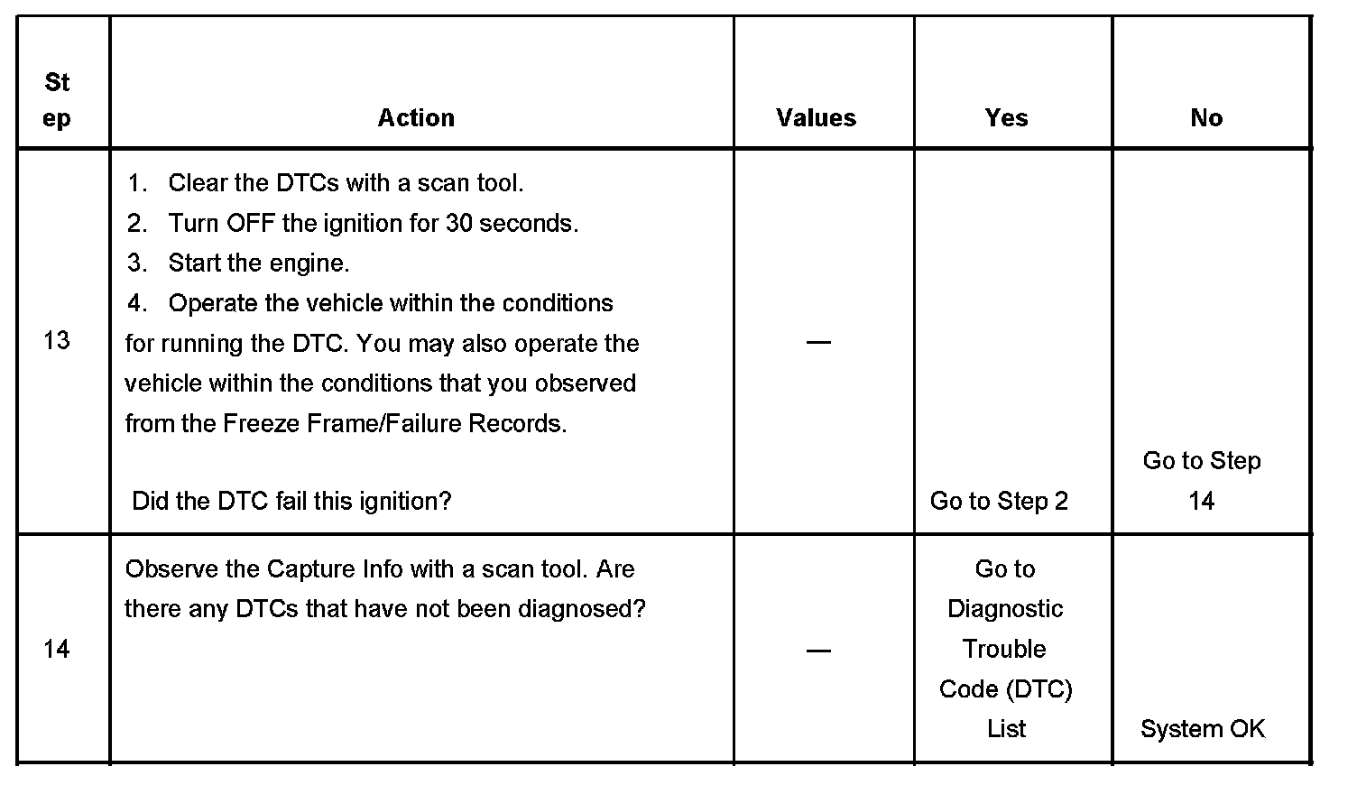 - A current DTC, Last Test Failed, clears when the diagnostic runs and passes.