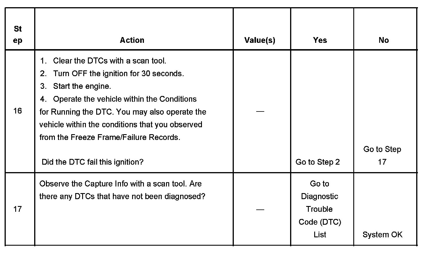 - A current DTC, Last Test Failed, clears when the diagnostic runs and passes.