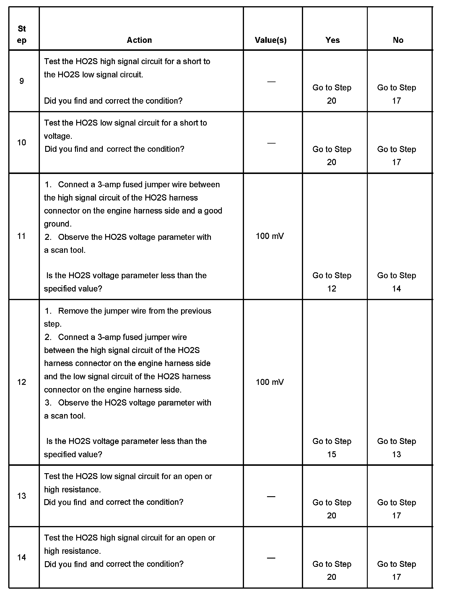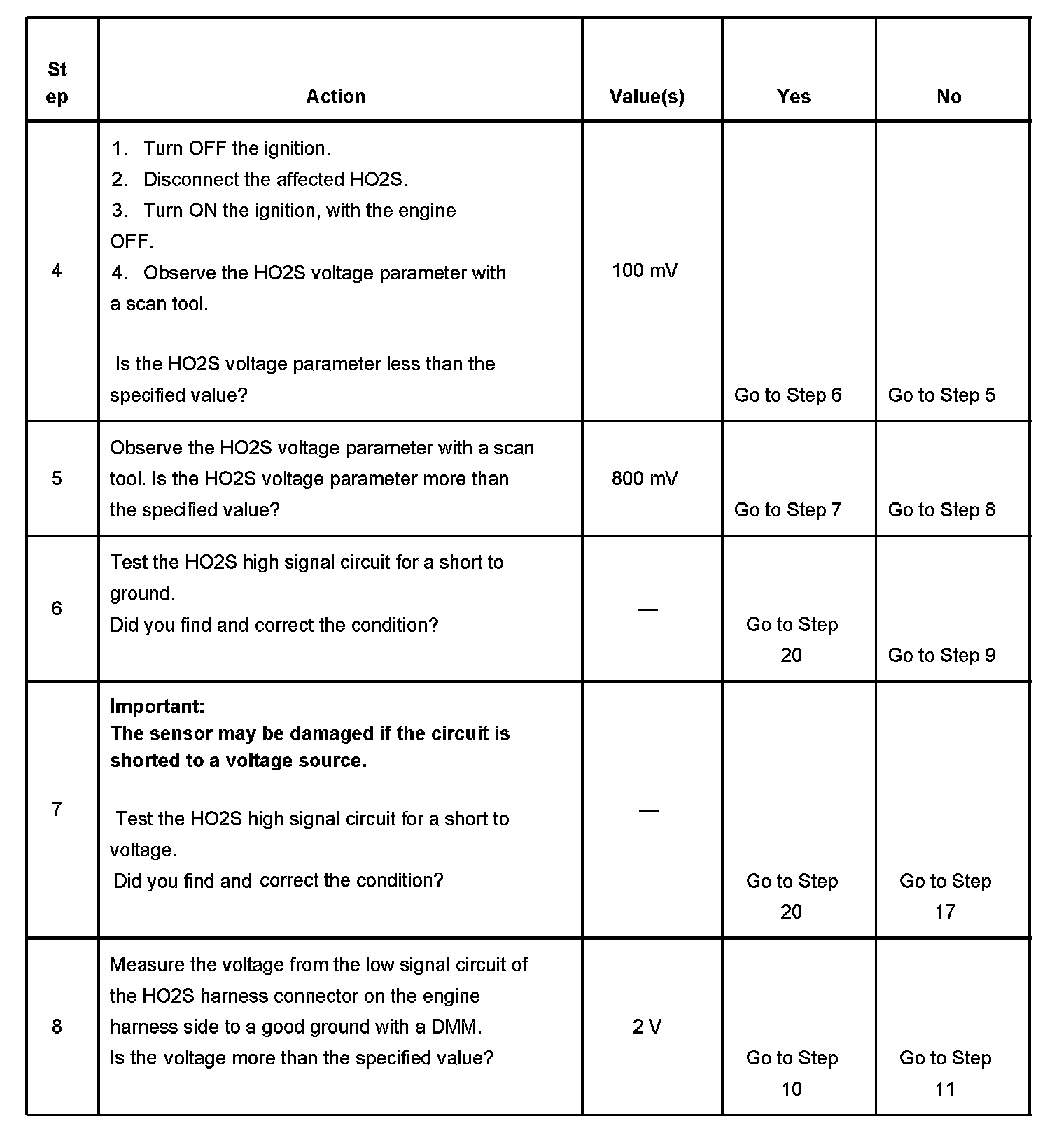 The PCM detects that the affected HO2S voltage parameter is less than 80 mV for 200 seconds.