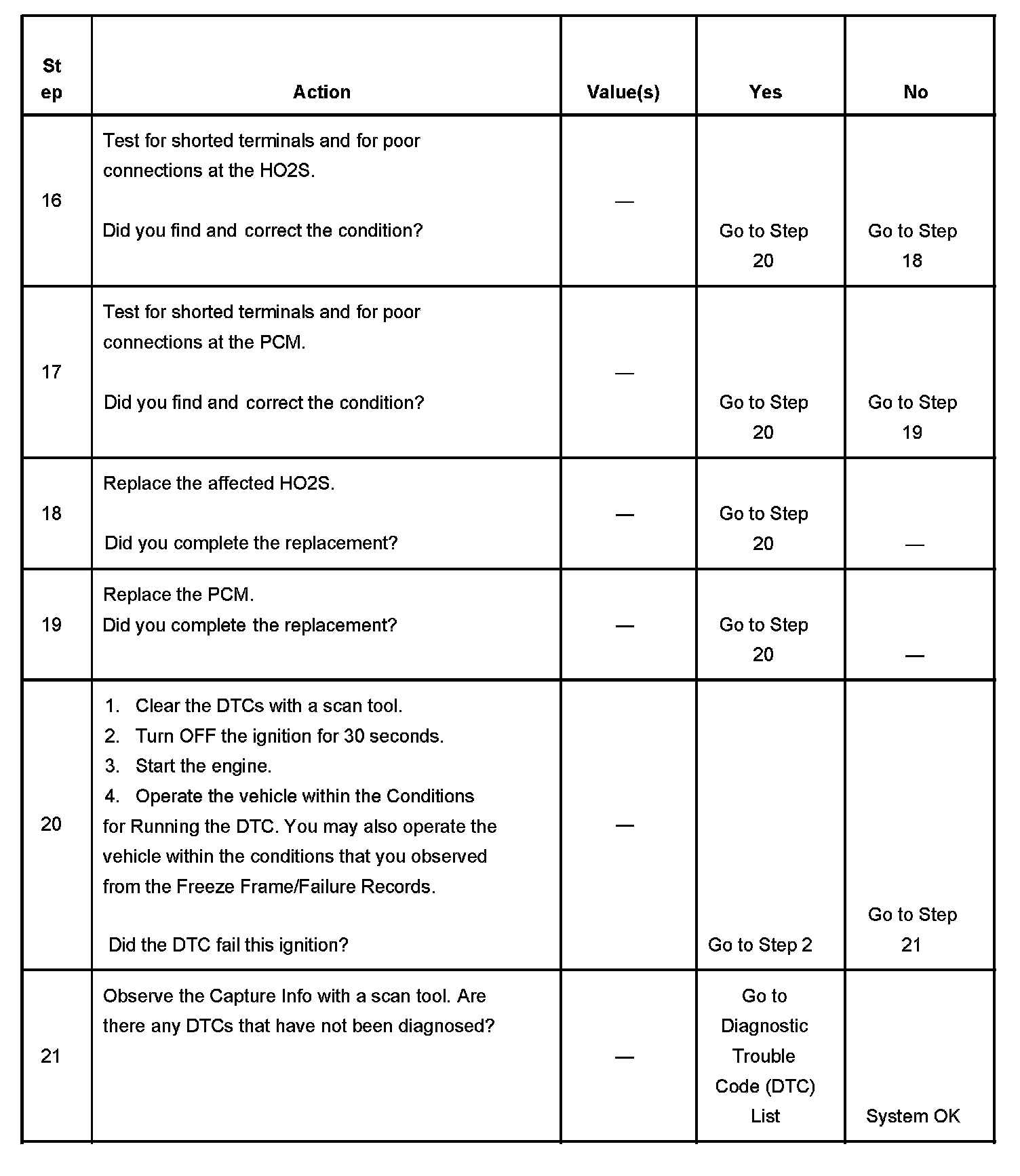 The PCM detects that the affected HO2S voltage parameter is less than 420 mV for 10 seconds.