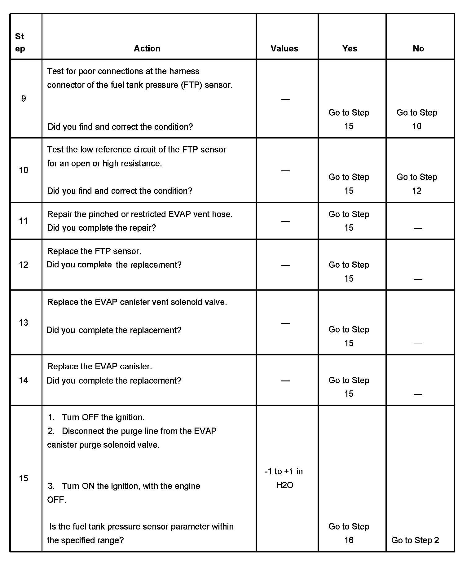 - The fuel tank pressure sensor is less than - 10 inches H2O.