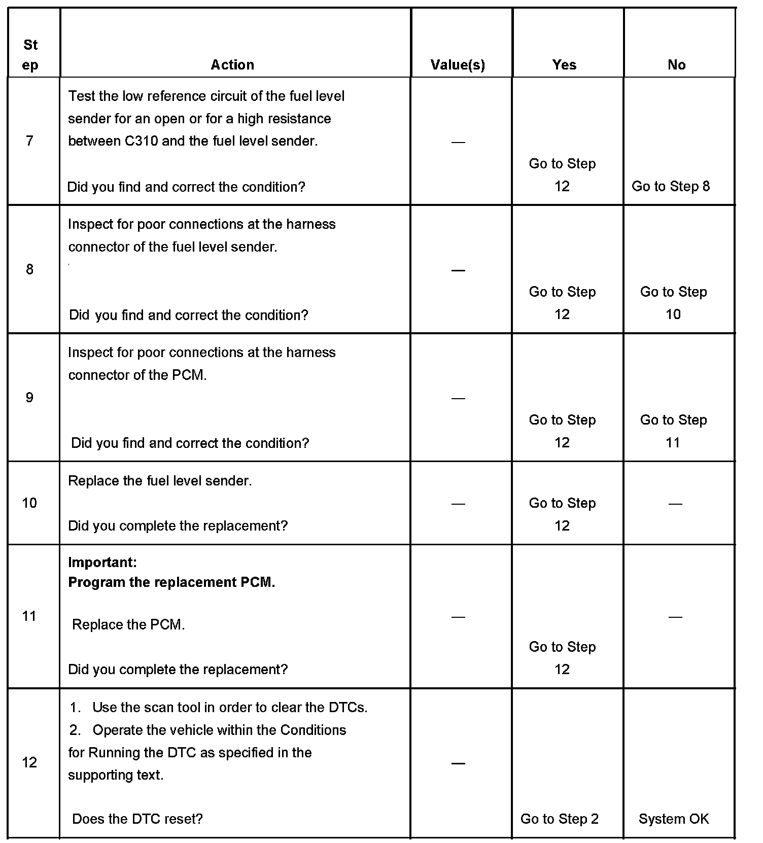 The number below refers to the step number on the diagnostic table.